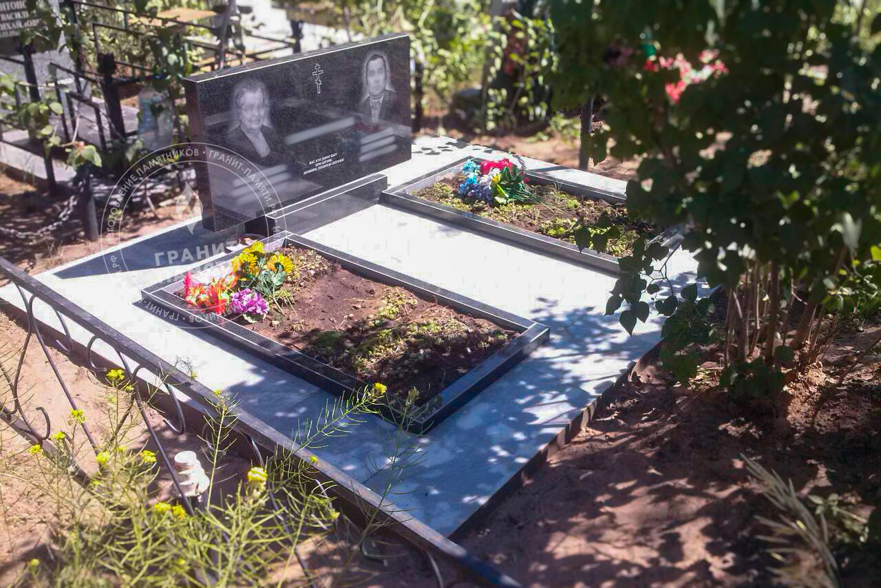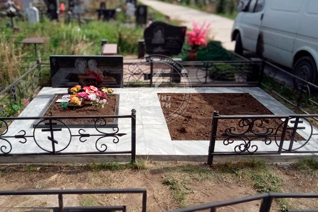- Доступен в разных комплектациях: с цветниками, с надгробными плитами и т.д.