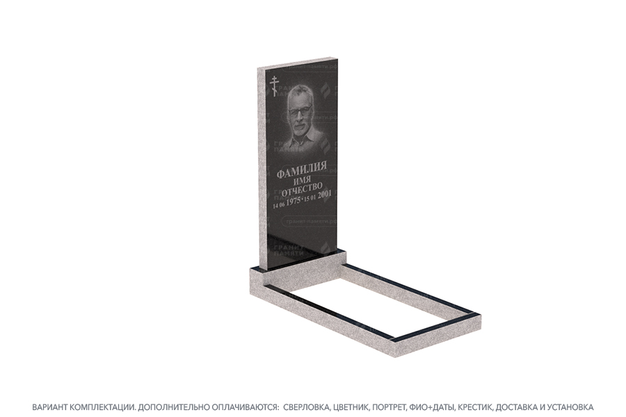 - Доступен в разных комплектациях: с цветниками, с надгробными плитами и т.д.